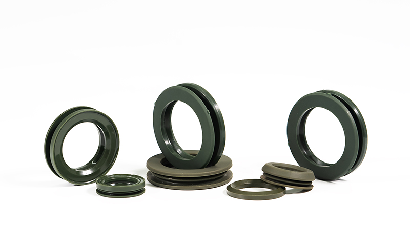 履帶是行走工程機(jī)械的重要組成部分,廣泛應(yīng)用于建筑、港口、采礦等場(chǎng)合,面臨沙土、污水等惡劣工況。在這些惡劣工況下,履帶的使用壽命取決于履帶鏈銷的密封性能。密封、防水、防塵等功能,以及材料和油脂的相容性外,在設(shè)計(jì)時(shí)我們還考慮到轉(zhuǎn)向、不平衡地形的情況。獨(dú)特的M型設(shè)計(jì)可以向彈簧一樣補(bǔ)充間隙,保持良好的密封。